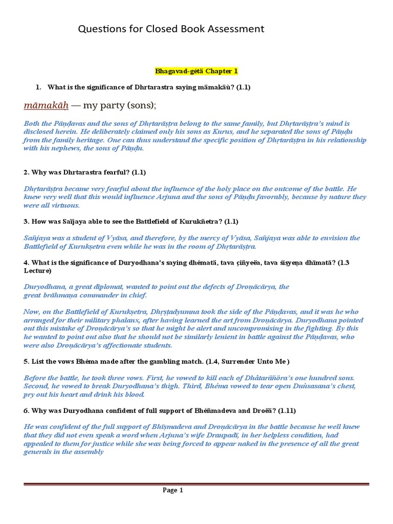 Bhakti Sastri Summative Exam For Senior Devotees Catuspathi